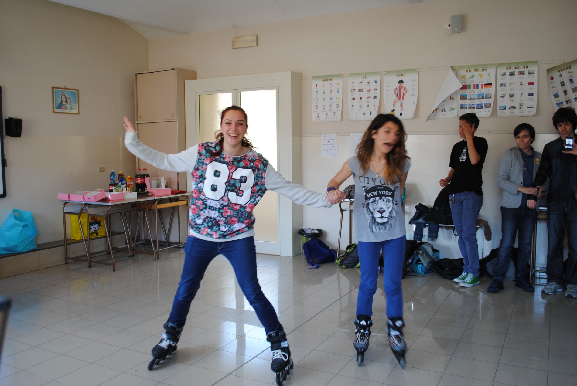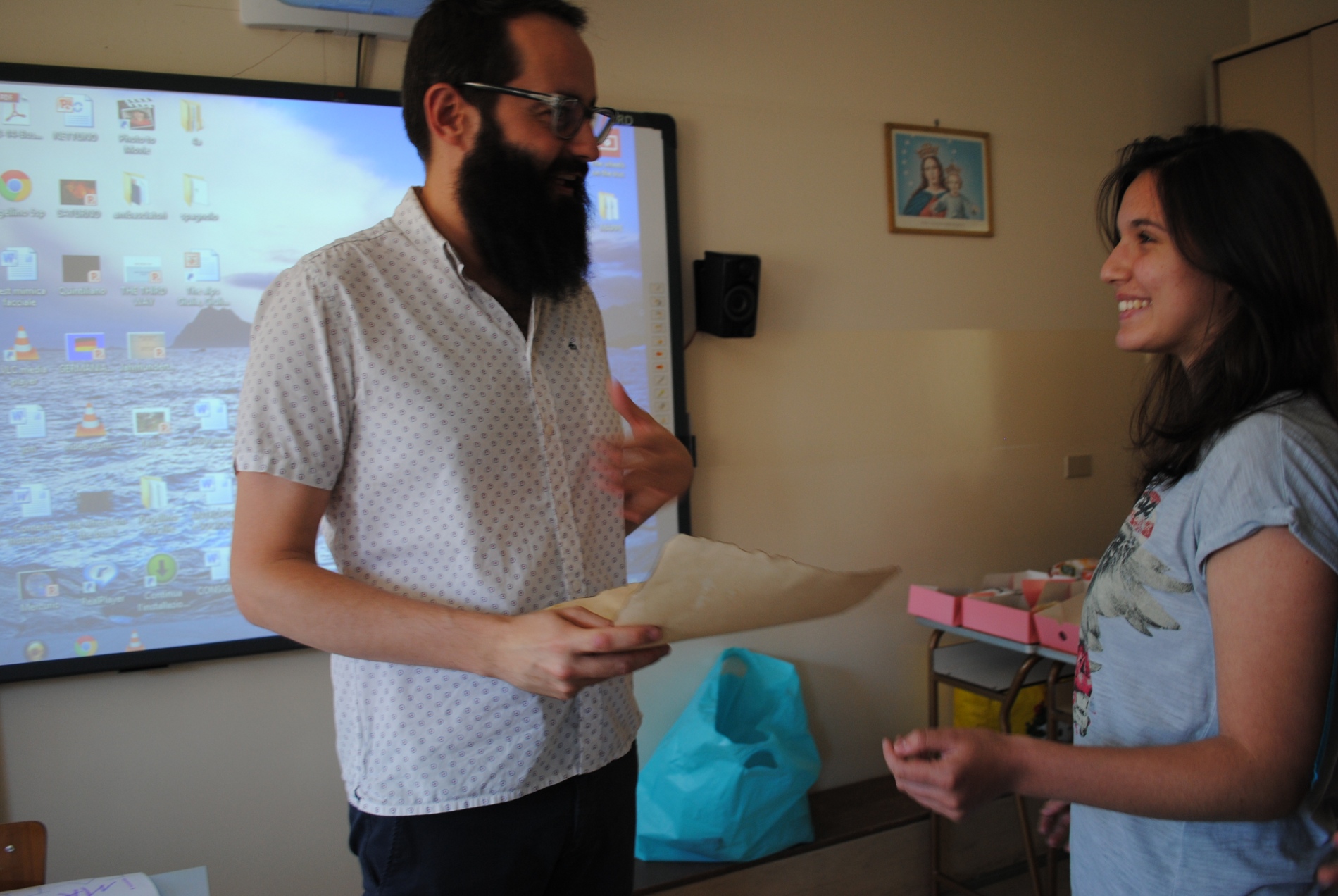 Quando a scuola si chiede di fare un lavoro di gruppo, la domanda principale è “Che cosa si fa?”. Già. Spesso non si ha la minima idea di cosa fare (e forse) è questo il bello: unire idee diverse per creare un grosso progetto. Questo lo sa bene Jon, il lettore di spagnolo del liceo, che per finire l’anno, ha deciso di tenere una delle lezioni più importanti, ma non della lingua che insegna, bensì della vita. Quando si è da soli si è forti, ma se si è in un gruppo si può diventare invincibili. È inutile cercare di realizzare un sogno da soli: se si è in un gruppo si può scavalcare qualunque montagna, attraversare ogni mare. Quindi, quando ha proposto alla 1ªB e alla 1°A di progettare una festa, con l’unica clausola che avremmo dovuto fare riferimento alla canzone “Tenia tanto” di Nona Daconte, non ha solo voluto passare un’ora in mezzo ai dolci preparati da noi studenti, ma far loro aprire gli occhi. Per noi ragazzi non è stato solo questo, ma si è trattato anche di ringraziare una persona che ha passato il suo tempo a condividere con noi le sue conoscenze e la sua cultura! Le idee erano semplici: cantare la canzone mentre due compagni si esibivano in uno spettacolo sui pattini, preparare da mangiare e consegnare a Jon un cartellone e una lettera. Ciò che le ha rese uniche è stata la grinta dei ragazzi che, anche se hanno incontrato difficoltà, non si sono fermati. Anche questo insegna qualcosa: dare il meglio nella vita, soprattutto se lo si fa per ringraziare una persona. Perché come dice la lettera che abbiamo scritto “El hombre entiende lo que tiene sólo cuando lo pierde” ( L’uomo comprende ciò che ha solo quando lo perde). E a volte, cercare di vedere i pregi delle persone al posto dei loro difetti può aiutare a capire quanto importanti sono nella vita di ognuno.