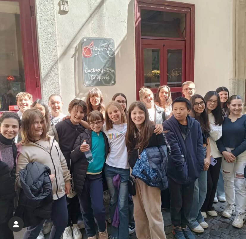 I nostri ragazzi del corso di francese delle medie e i ragazzi del biennio che studiano francese sono andati a mangiare le crêpes.