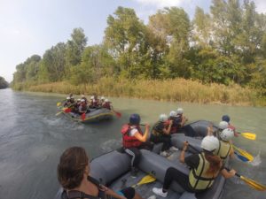 Dovevamo pagaiare avanti e indietro seguendo le istruzione che ci venivano date. È stata davvero una bellissima esperienza, sia per aver provato un nuovo sport sia perché durante il percorso affrontato, oltre a dover pagaiare, abbiamo avuto anche la possibilità di eseguire una piccola battaglia di schizzi avvenuta tra i due gommoni presenti nel fiume. Tutti i ragazzi possono confermare che nessuno è uscito illeso. Infatti, ognuno di noi è arrivato sulla terra ferma con i vestiti completamente bagnati.