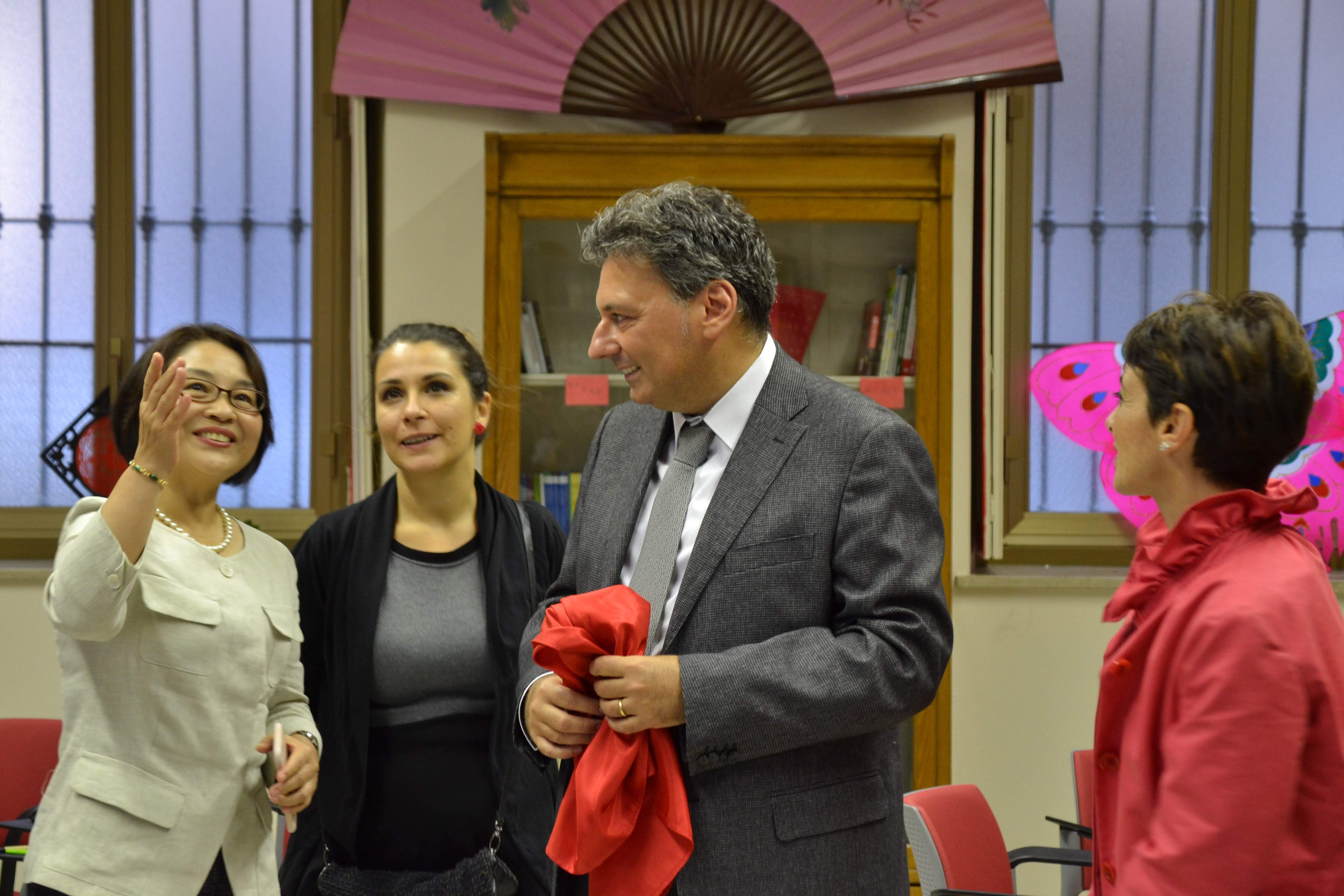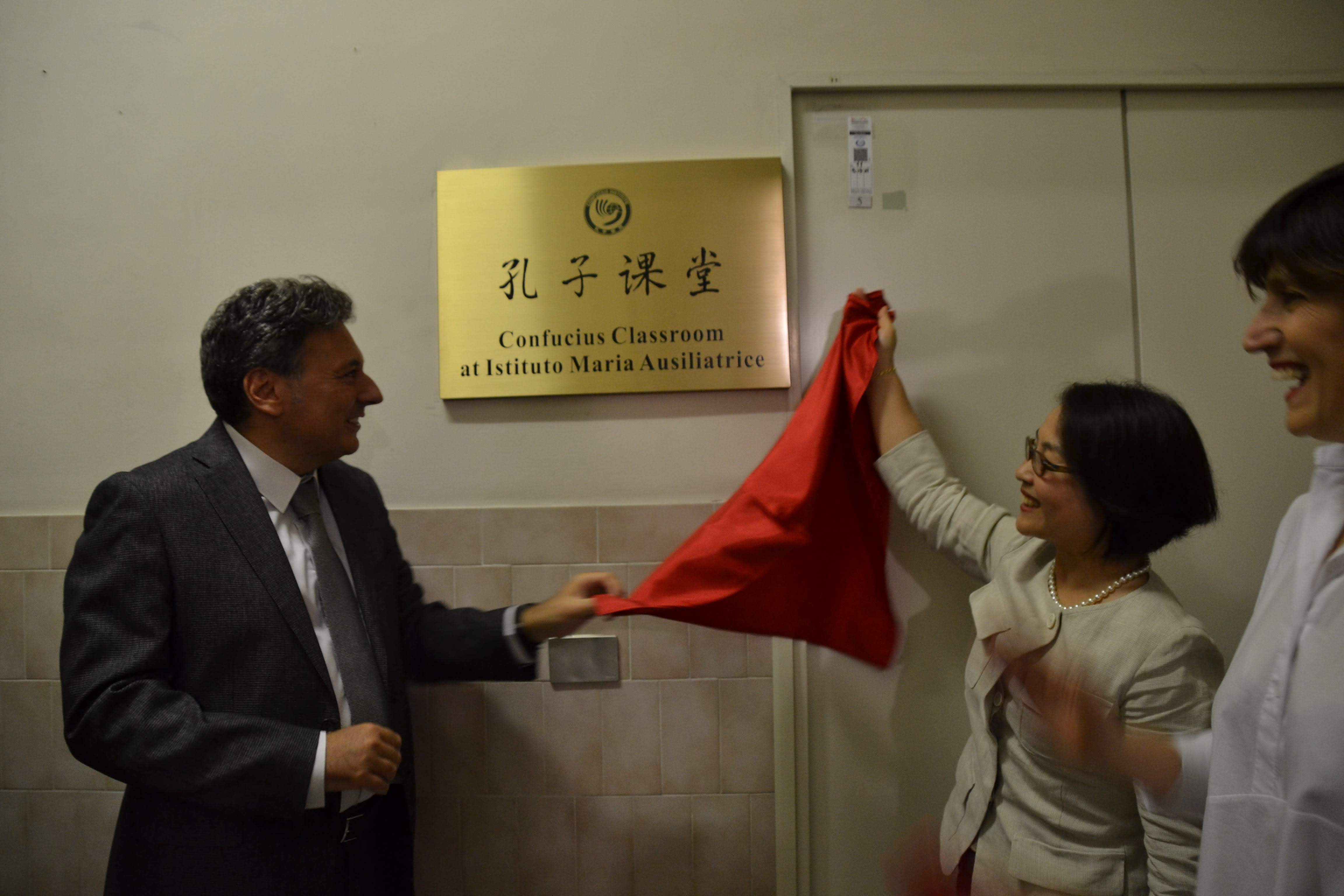 Hanno poi preso la parola il Coordinatore delle attività didattiche ed educative e le rappresentanti dell’Istituto Confucio. La delegazione cinese dell’Istituto Confucio e il preside Filippo Buzio si sono recati innanzi l’aula per scoprire la targa che riporta l’onorificenza.