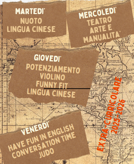 Tutte le attività extra-curricolari si svolgono dopo l’orario scolastico nei locali della scuola. NON c’è bisogno di venire a prendere i bambini e riportarli. Alle 16.00, o a fine lezioni, ci saranno i maestri dei diversi corsi che gestiranno le attività, che finiscono generalmente alle ore 17.30