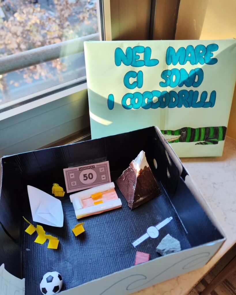 È stato un momento arricchente durante il quale Fabio ha risposto alle nostre domande e ci ha aiutato a riflettere, ancora più a fondo, su tematiche attuali e importanti. I nostri ragazzi hanno voluto ringraziarlo donandogli due scatole narrative, da loro realizzate, ispirate al testo letto 🍃⭐🏔️🌊🐊