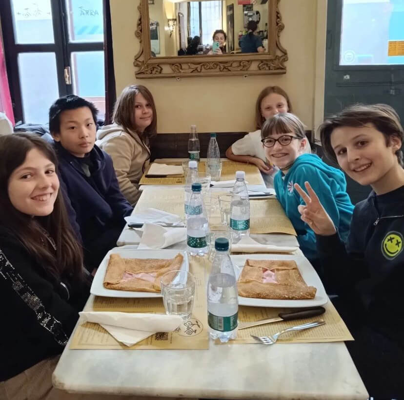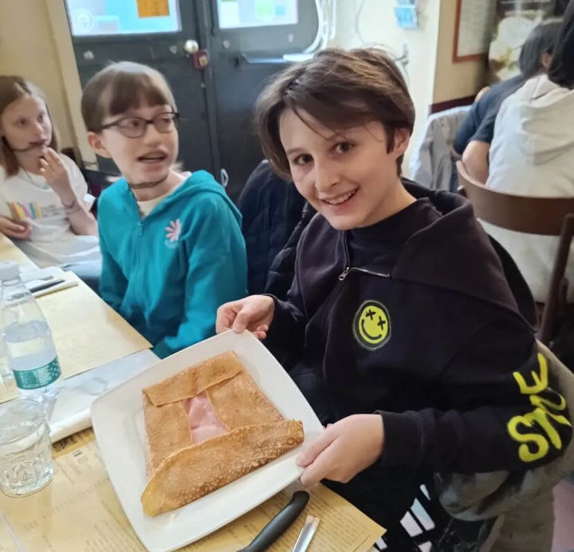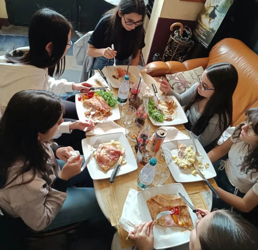 I nostri ragazzi del corso di francese delle medie e i ragazzi del biennio che studiano francese sono andati a mangiare le crêpes.
