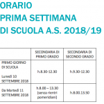 ORARIO PRIMA SETTIMANA DI SCUOLA 2018/19